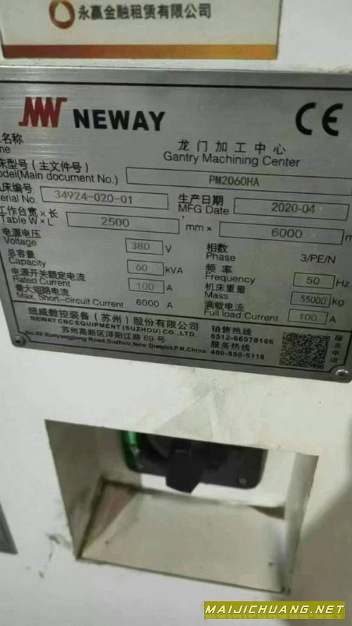 刚刚买下纽威:2560 H A龙门加工中心.工作台2.5 X 6.