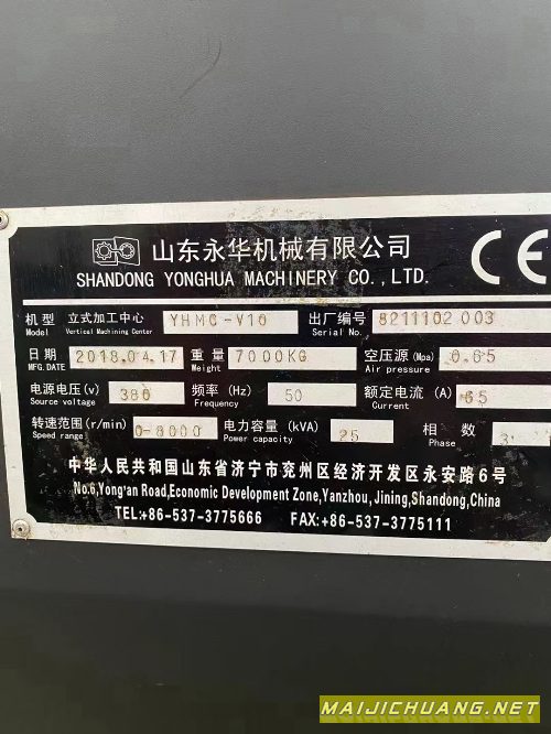 | 2018年永华1060加工中心,三线轨,bt40主轴8000转,发. |